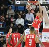 SK 최준용이 15일 서울 잠실학생체육관에서 열린 인삼공사와의 경기에서 덩크슛을 꽂아넣고 있다. 연합뉴스 |