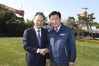 왼쪽부터 KT 황창규 회장과 현대중공업지주 권오갑 회장이 현대중공업 영빈관에서 악수를 나누고 있다 (사진=KT) |