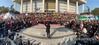 황 대표는 본청 계단에서 이들 집회 참가자에게 귀가를 종용한 뒤 직접 정문 밖으로 걸어나와 이들을 '배웅'했다.