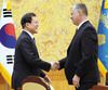 문재인(왼쪽) 대통령이 16일 청와대에서 스티븐 비건 국무부 대북정책 특별대표 겸 부장관 지명자와 악수하고 있다. 전날 2박 3일 일정으로 방한한 비건 대표는 고강도 도발 징후를 보이는 북한에 "우리는 여기(서울)에 있고, 당신들은 우리에게 어떻게 연락할지 안다"면서 '판문점 회담'을 공개 제안했다. /연합뉴스 |