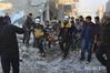 [바이로운=AP/뉴시스] 12월 7일 시리아 반군 집결지역 이들립주의 한 마을에서 정부군의 공습 후 민간방위대 '화이트헬멧' 대원들이 사상자들을 옮기고 있다. 이날만 18명의 민간인이 사망했다. 2019. 12. 17. |
