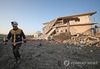러시아의 공습으로 파괴된 시리아 이들립 지역에서 구호활동 중인 '하얀 헬멧' 대원 |