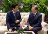 문재인 대통령과 아베 신조 일본 총리가 지난달 4일 오전(현지시간) 태국 방콕 임팩트포럼에서 아세안+3 정상회의 전 환담을 하고 있다. 사진=연합뉴스 |