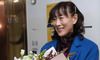 20일 정부세종청사로 처음 출근한 최윤희 문화체육관광부 제2차관이 꽃다발을 받고 환하게 웃고 있다. 문화체육관광부 제공 |