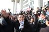 자유한국당 황교안 대표가 16일 국회에서 열린 '공수처법 선거법 날치기 저지 규탄대회' 참가자들과 함께 시위를 벌이고 있다./연합뉴스 |