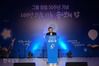 승범수 코린도그룹 수석부회장이 21일 밤 자카르타 도심 호텔에서 열린 그룹 창립 50주년 기념행사에서 그룹의 새 슬로건 '원 스텝 어헤드(One Step Ahead)'를 발표하고 있다. |