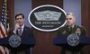 마크 에스퍼 미국 국방장관(왼쪽)과 마크 밀리 합참의장이 20일(현지시간) 버지니아주 알링턴에 위치한 국방부에서 연말 결산 기자회견을 갖고, 대북정책을 포함한 전 분야를 주제로 질의응답을 하고 있다. 알링턴=AFP연합뉴스 |