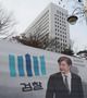 23일 서초동 대검찰청 앞에 조국 전 법무장관의 사진이 인쇄된 현수막이 내걸려 있다. 검찰은 이날 ‘유재수 전 부산시 경제부시장 감찰무마’ 의혹과 관련해 조국 전 법무부 장관에 대해 사전구속영장을 청구했다. |연합뉴스 |