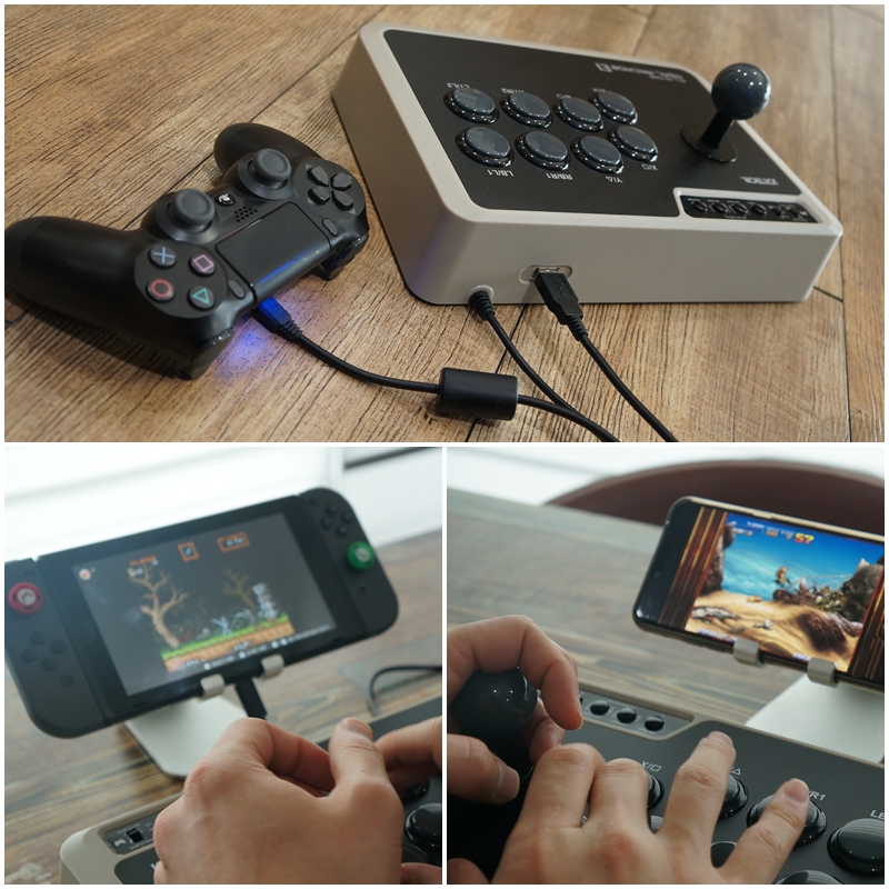 일단 E1 올인원 리얼 아케이드 스틱은 6개 플랫폼 9개에 기기에 대응한다. 1개 제품만 구매해도 현재 시장에 자리하고 있는 어지간한 기기에 모두 사용할 수 있다. PC, 플레이스테이션(PS3), 플레이스테이션4(PS4), 엑스박스 360(XBOX 360), 엑스박스 원(XBOX ONE), 닌텐도 스위치, 닌텐도 스위치 라이트, 네오지오 미니, 안드로이드 기반 스마트폰에서 사용할 수 있다.
