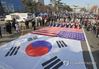 24일 낮 12시30분 국회의사당 앞에서 우리공화당과 천만인석방운동본부가 태극기 집회를 열고 있다. [연합뉴스] |