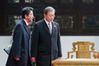 문재인 대통령과 아베 일본 총리가 24일(현지시간) 한중일 협력 20주년 행사가 열리는 중국 쓰촨성 청두 두보초당에 입장하고 있다. 두보초당은 당나라 시인 두보가 머무른 곳이다. 청두|청와대사진기자단 |