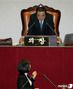 (서울=뉴스1) 이종덕 기자 = 전희경 자유한국당 의원이 24일 오후 서울 여의도 국회에서 열린 제372회 국회 (임시회) 제1차 본회의에서 공직선거법 일부개정법률안에 대한 반대 측 무제한 토론(필리버스터) 문희상 국회의장에게 질의하고 있다. 전희경 의원은 "문희상 국회의장이 명문화된 국회법을 지키지 않고, 아들에게 지역구 세습에만 몰입하고 있다"고 주장했다.