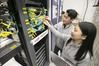 ▲KT네트워크부문 직원들이 서울 구로국사에서 CUPS 기술이 적용된 5G 기업전용 시스템을 점검하고 있다. /KT 제공