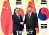 시진핑 중국 국가 주석이 내년 상반기 방할할 가능성이 거의 확정적이라고 25일 청와대는 밝혔다. 문재인 대통령과 시 주석이 지난 23일 중국 베이징 인민대회당에서 정상회담 전 악수하는 모습. /청와대 제공 |