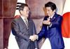 문재인 대통령과 아베 일본 총리가 24일(현지시간) 중국 쓰촨성 청두 세기성 샹그릴라호텔에서 악수하며 인사를 나누고 있다. |