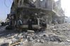 [사라켑(시리아)=AP/뉴시스]시리아 반군이 장악하고 있는 마지막 거점 중 하나인 이들립주 사라켑에서 정부군의 공습으로 파괴된 시장에 사람들이 모여 있다. 21일 정부군의 공습으로 8명이 사망하고 20여명이 부상했으며 수천명의 주민들이 추가로 대피에 나섰다. 정부군이 몇주 전부터 공격을 강화하면서 정부군과 반군 간 휴전은 사실상 깨졌다. 2019.12.22 |