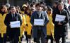 장훈 4·16가족협의회 운영위원장을 비롯한 관계자들이 세월호 참사 2차 국민 고소·고발 및 고소인 조사 관련 고발장을 접수하기 위해 27일 오전 서울중앙지검으로 향하고 있다.(사진=뉴시스) |