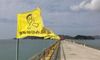 전남 진도군 팽목항에 나부끼는 세월호 추모 깃발. 연합뉴스 |