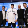 토론토 입단 기자회견 당시 류현진(가운데). 캡처 | 류현진 인스타그램 |
