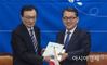 더불어민주당 인재영입 3호 인사인 김병주 예비역 대장이 2일 국회에서 입당식을 마친 후 이해찬 대표에게 당헌·당규 책자를 받고 있다./윤동주 기자 doso7@ |