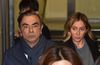 카를로스 곤 전 닛산자동차 회장이 2019년 4월 3일 일본 도쿄에 있는 자신의 법률 대리인 사무소에서 부인 캐럴과 나오는 모습. 도쿄/AFP연합뉴스 |