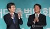 2018년 2월 13일 당시 바른미래당 유승민 공동대표(왼쪽)와 안철수 전 대표가 경기도 고양시 킨텍스 제2전시장에서 열린 바른미래당 출범식에서 박수치고 있다. [연합뉴스 자료사진] |
