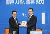 당원교과서 전달하는 민주당 이해찬 대표 |