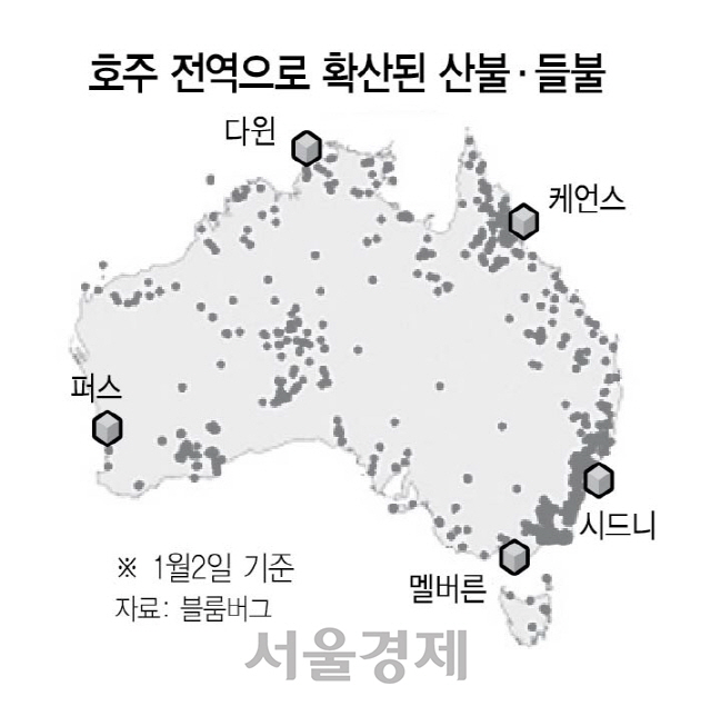 야권은 모리슨 총리의 친(親)석탄정책이 화를 키웠다면서 비판의 목소리를 높이고 있다. 보수 성향의 모리슨 내각은 석탄산업의 이권을 대변하는 정책을 펼치고 있다. 호주 석탄산업이 전 세계 석탄 수출의 3분의1을 차지하는데다 핵심 경합 선거구에서 일자리를 제공하기 때문이다. 최근 모리슨 총리는 석탄산업을 감축해야 한다는 야권의 요구를 “무모하다”며 일축했다. 미 CNN은 “주요 도시와 마을이 폐허로 변하면서 호주의 생활방식이 지속될 수 있느냐는 의문이 제기되고 있다”면서 “모리슨 총리가 이번 화재로 곤경에 빠질 수 있다”고 지적했다. /김기혁기자 coldmetal@sedaily.com