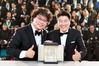 지난해 5월 25일(현지시간) 폐막한 제72회 칸영화제에서 봉준호 감독(왼쪽)이 영화 ‘기생충’으로 황금종려상을 수상했다. 봉 감독과 배우 송강호가 황금종려상 트로피를 놓고 환하게 웃고 있다. [AFP=연합뉴스] |