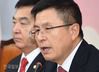 황교안(오른쪽) 자유한국당 대표가 6일 국회에서 열린 최고위원회의에서 발언하고 있다. 오대근 기자 |