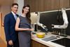 삼성전자 모델들이 삼성봇 셰프를 선보이고 있다. ‘삼성봇 셰프’는 로봇 팔에 다양한 도구를 바꿔 장착함으로써 식재료를 자르고 섞거나 양념을 넣는 등의 요리 보조 기능을 지원하며, 레시피를 다운로드 받아 필요한 작업을 수행할 수 있다./제공=삼성전자 |