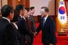 문재인 대통령이 7일 청와대에서 신년사 발표에 앞서 국무위원과 인사하고 있다.(사진=연합뉴스) |