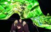 LG전자 부스 입구에서는 OLED 플렉서블 사이니지 200여 장으로 구성된 조형물이 관람객들을 맞이한다. |