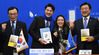 아내는 ‘암벽 여제’ 더불어민주당 영입 인재 5호인 오영환 전 소방관(왼쪽 두번째)과 그의 부인인 스포츠클라이밍 선수 김자인씨가 7일 국회에서 열린 인재영입발표 행사에서 이해찬 대표(왼쪽), 윤호중 사무총장과 함께 기념촬영을 하고 있다. 허정호 선임기자 |