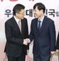 새로운보수당 하태경 책임대표(오른쪽)가 7일 국회 자유한국당 황교안 대표 찾아 인사하고 있다. 임현동 기자/20200107 |