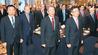 헌정회 신년인사회 모인 야권 7일 서울 여의도 켄싱턴호텔에서 열린 대한민국헌정회 신년인사회에서 자유한국당 황교안 대표와 유경현 대한민국헌정회 회장, 바른미래당 손학규 대표(앞줄 오른쪽부터)가 애국가를 부르고 있다. 뉴시스 |