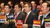 의원총회 구호외치는 황교안?심재철 - 황교안 자유한국당 대표, 심재철 원내대표, 의원들이 23일 서울 여의도 국회에서 열린 의원총회에서 패스트랙법안 반대 구호를 외치고 있다. 2019.12.23/뉴스1 |