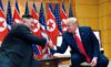 도널드 트럼프 미국 대통령과 김정은 북한 국무위원장이 지난해 6월 30일 판문점에서 악수하고 있다./미 국무부 |