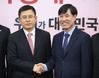 하태경(오른쪽) 새로운보수당 책임대표가 7일 오후 국회에서 황교안 자유한국당 대표를 예방하고 있다. 연합뉴스 |