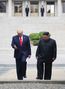 도널드 트럼프 미국 대통령과 북한 김정은 국무위원장이 지난해 6월30일 판문점 군사분계선 북측 지역에서 인사한 뒤 남측으로 향하고 있는 모습(사진=연합뉴스). |