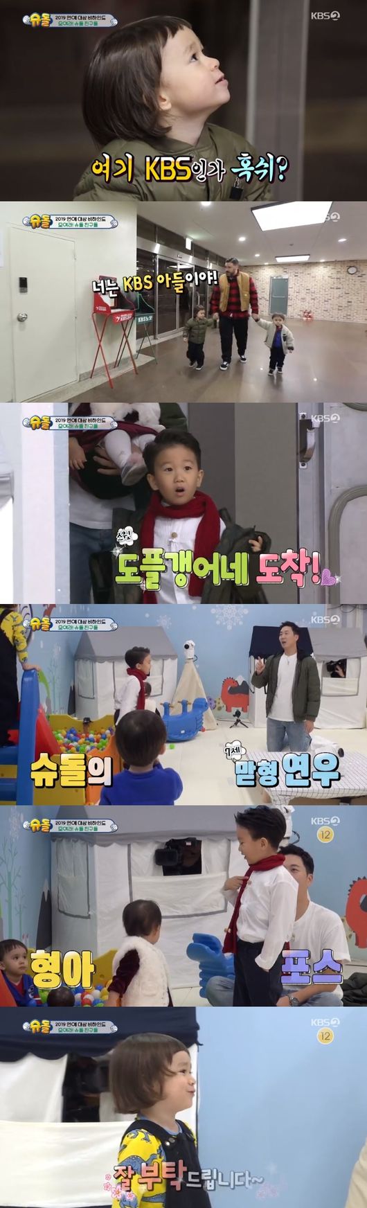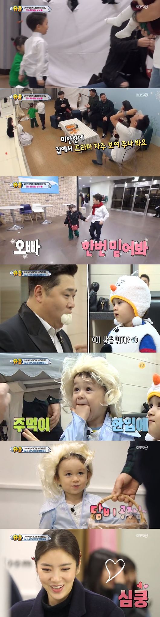 12일 방송된 KBS예능 '슈퍼맨이 돌아왔다'에서는 슈돌 팀의 연예 대상 시상식 대기실에서의 모습이 그려졌다.