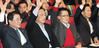 대안신당은 12일 국회에서 중앙당 창당대회를 열고 최경환(앞줄 맨 왼쪽) 의원을 대표로 추대했다. 왼쪽부터 최 대표, 유성엽·박지원·천정배 의원. /이덕훈 기자 |