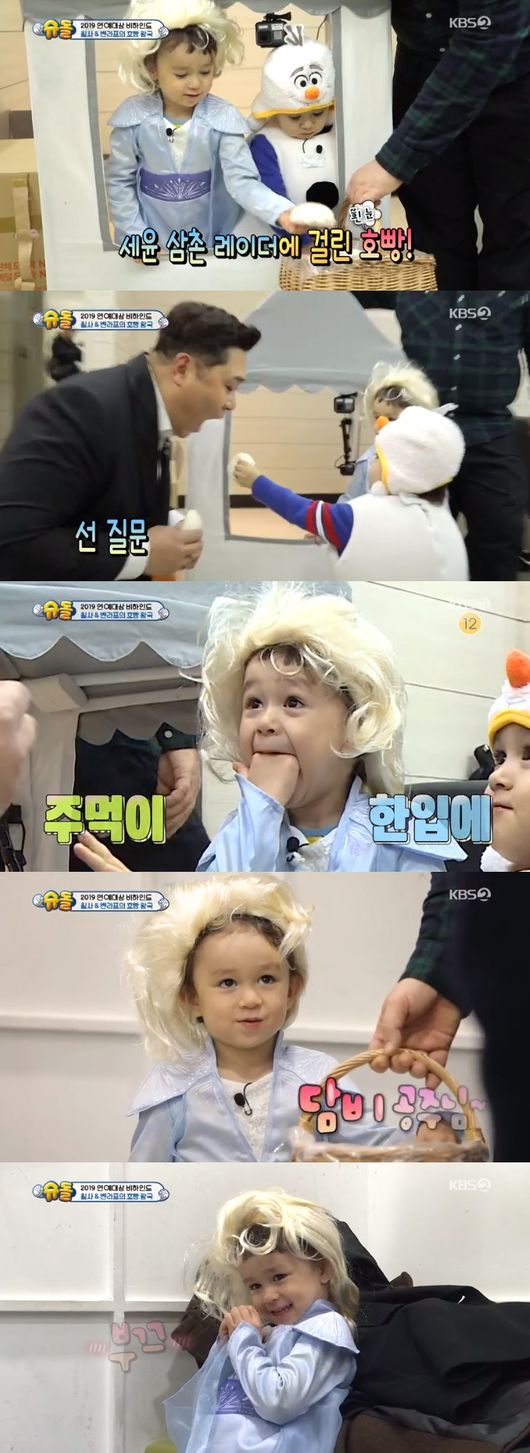 한편 이날 윌벤져스는 연예대상 시상식장을 찾았다. 윌벤져스는 울라프와 엘사로 변신해 문세윤에게 호빵을 줬다..윌벤져스는 호빵을 먹는 문세윤의모습을 보며 신기해했고, 그 모습에 윌리엄은 자신의 주먹을 입에 넣었고 문세윤이 당황해했다.