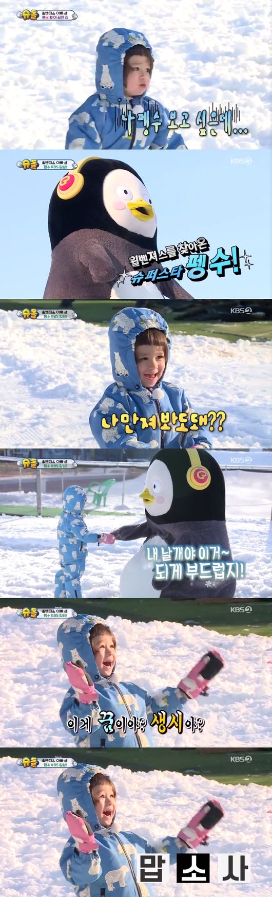 12일 방송된 KBS 예능 '슈퍼맨이 돌아왔다'에서는 펭수를 만나는 윌벤져스의 모습이 그려졌다.