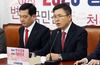 자유한국당 황교안(오른쪽) 대표가 13일 국회에서 열린 최고위원회의에서 발언하고 있다./연합뉴스 |
