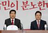 심재철 자유한국당 원내대표(왼쪽)가 14일 오전 서울 여의도 국회에서 열린 원내대책회의에서 발언하고 있다. (사진=연합뉴스) |