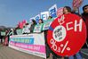 “방위비 분담금 졸속 타결 반대” 청와대 앞 시위 민주노총과 참여연대 등 시민단체 관계자들이 14일 청와대 분수대 앞에서 한·미 방위비 분담금 협상 졸속 타결에 반대하는 기자회견을 하고 있다. 연합뉴스 |