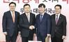 새로운보수당 하태경 책임대표(오른쪽 두 번째)가 7일 국회 자유한국당 황교안 대표(왼쪽 두 번째) 찾아 인사하고 있다. 왼쪽부터 자유한국당 김성원 의원, 황 대표, 새로운보수당 하 대표, 정운천 의원. 임현동 기자 |