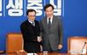 15일 이해찬 더불어민주당 대표(왼쪽)가 국회를 방문한 이낙연 전 국무총리와 악수하고 있다. 뉴스1 |