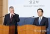 이도훈 외교부 한반도평화교섭본부장과 스티브 비건 미국 국무부 대북정책특별대표가 16일 서울 종로구 외교부 청사 브리핑룸에서 약식 기자회견을 하고 있다. /문호남 기자 munonam@ |